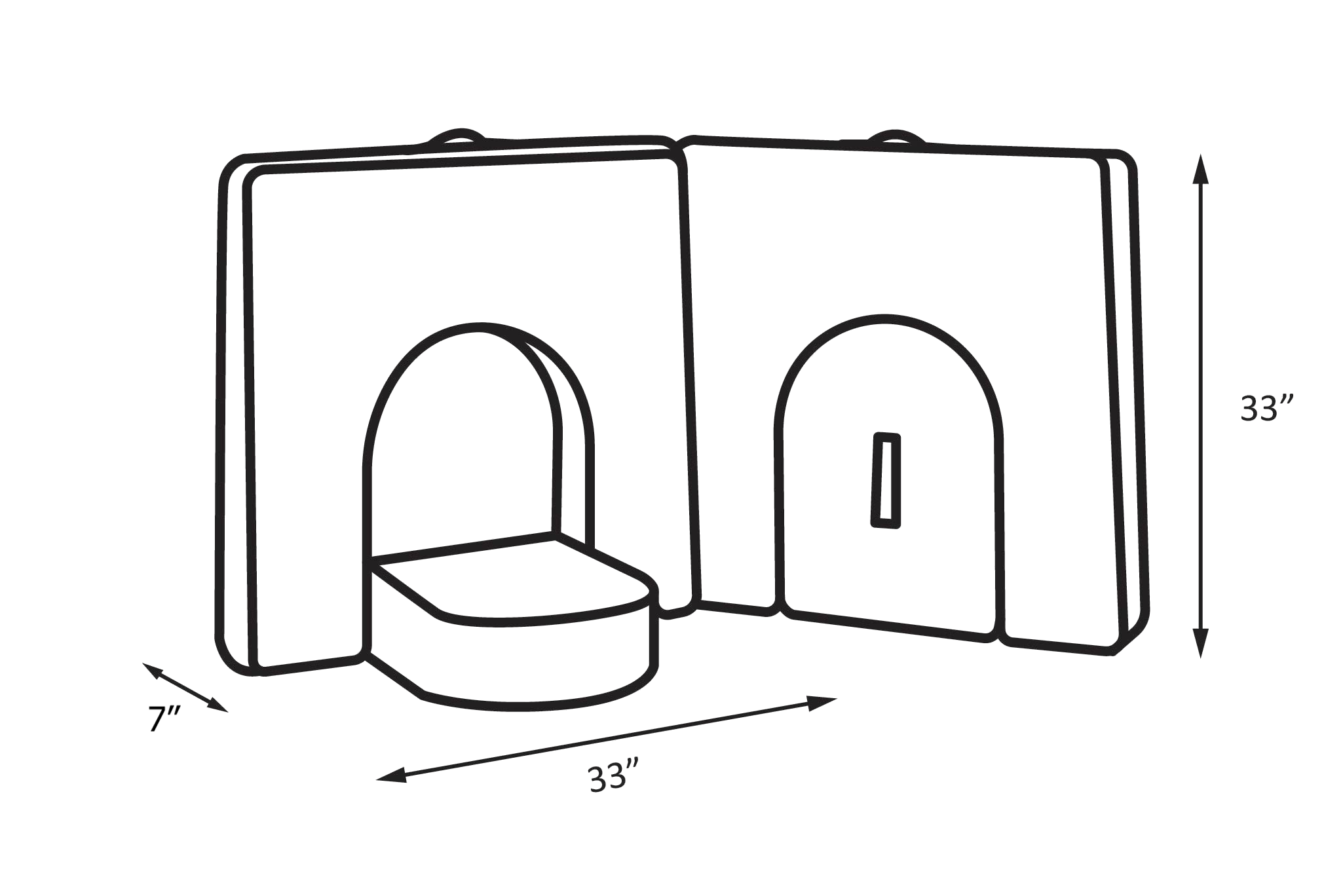 Two arch shape pieces + two doors made of strong, sturdy, high density foam that serve as archways and doors for all kinds of play and functionality!