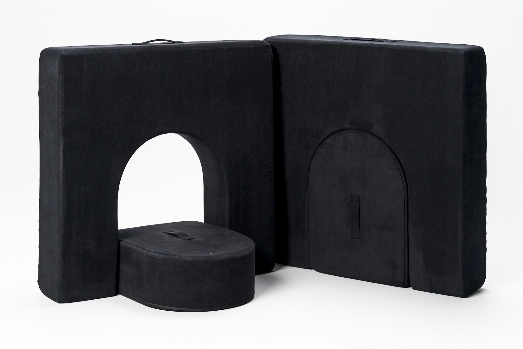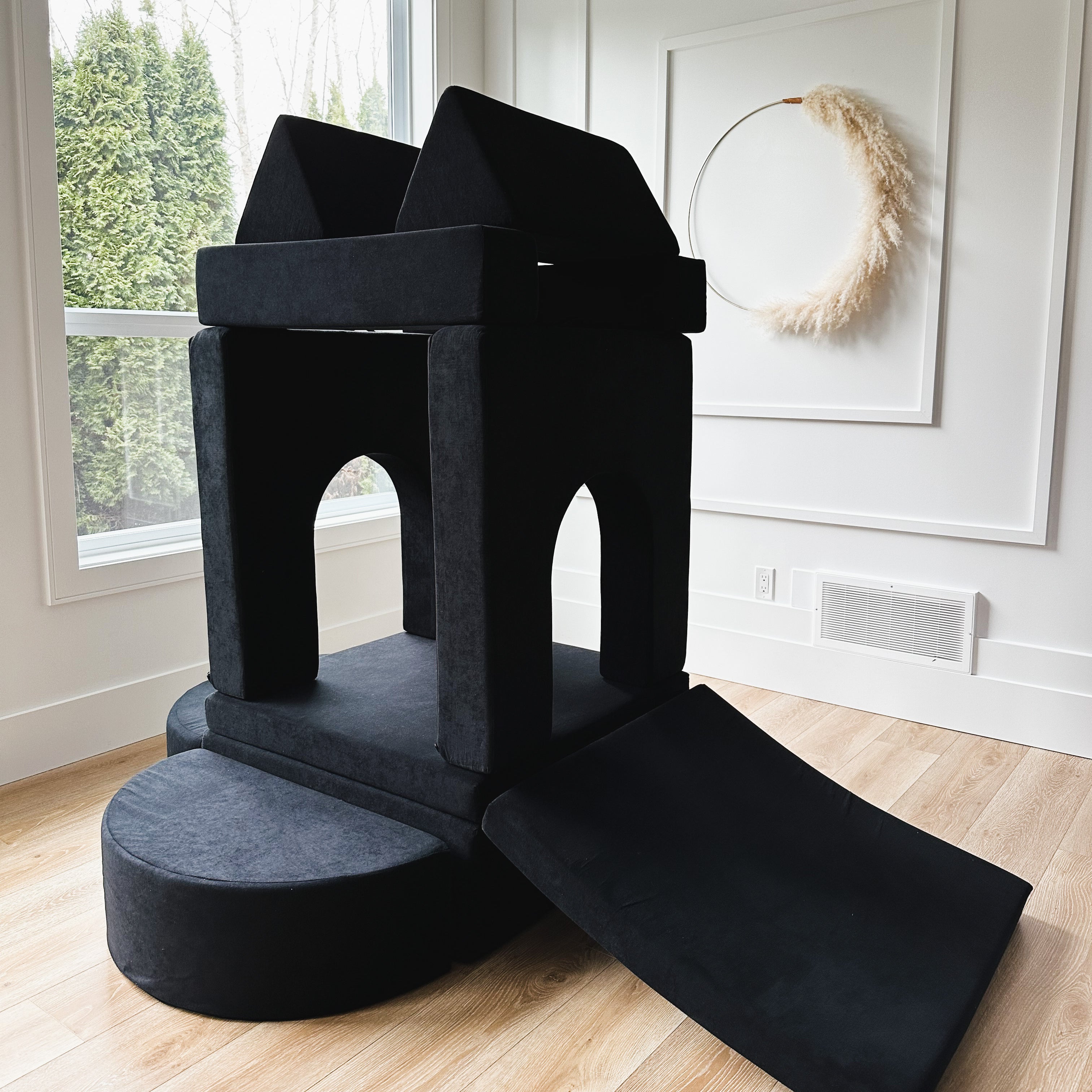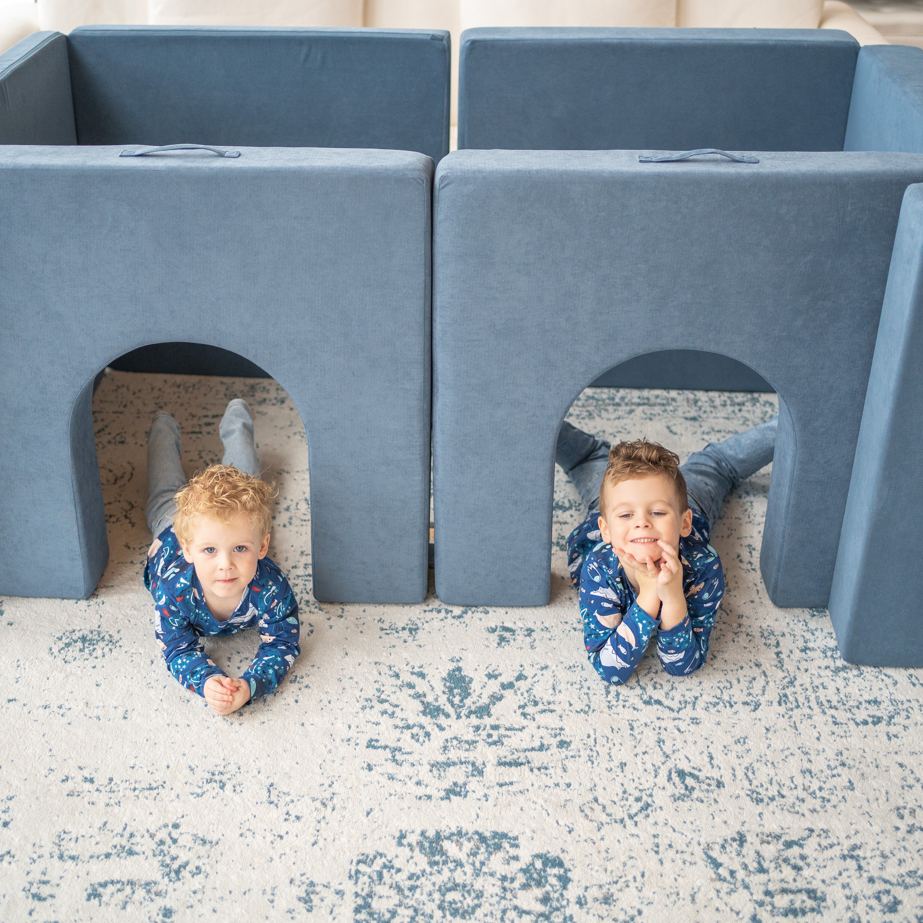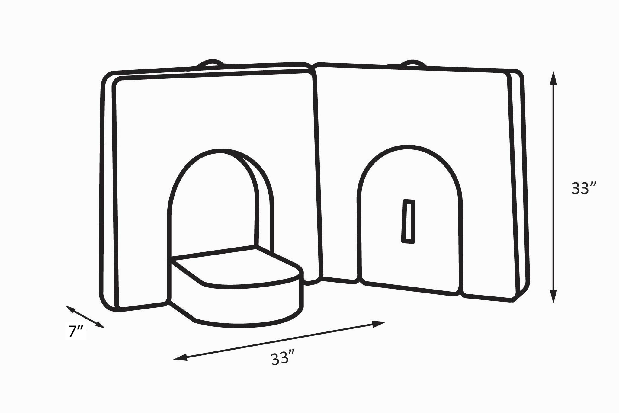 Two arch shape pieces + two doors made of strong, sturdy, high density foam that serve as archways and doors for all kinds of play and functionality!