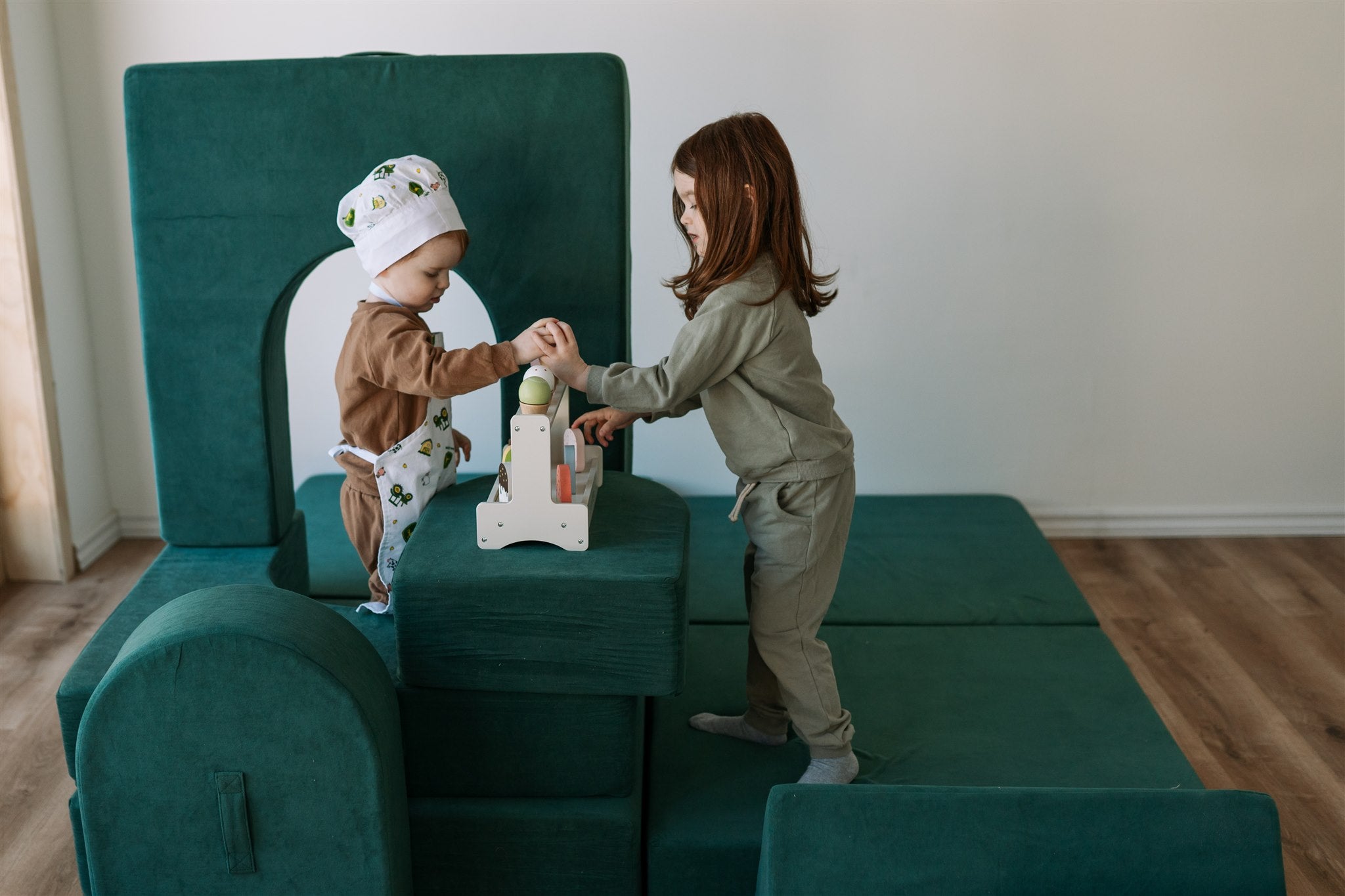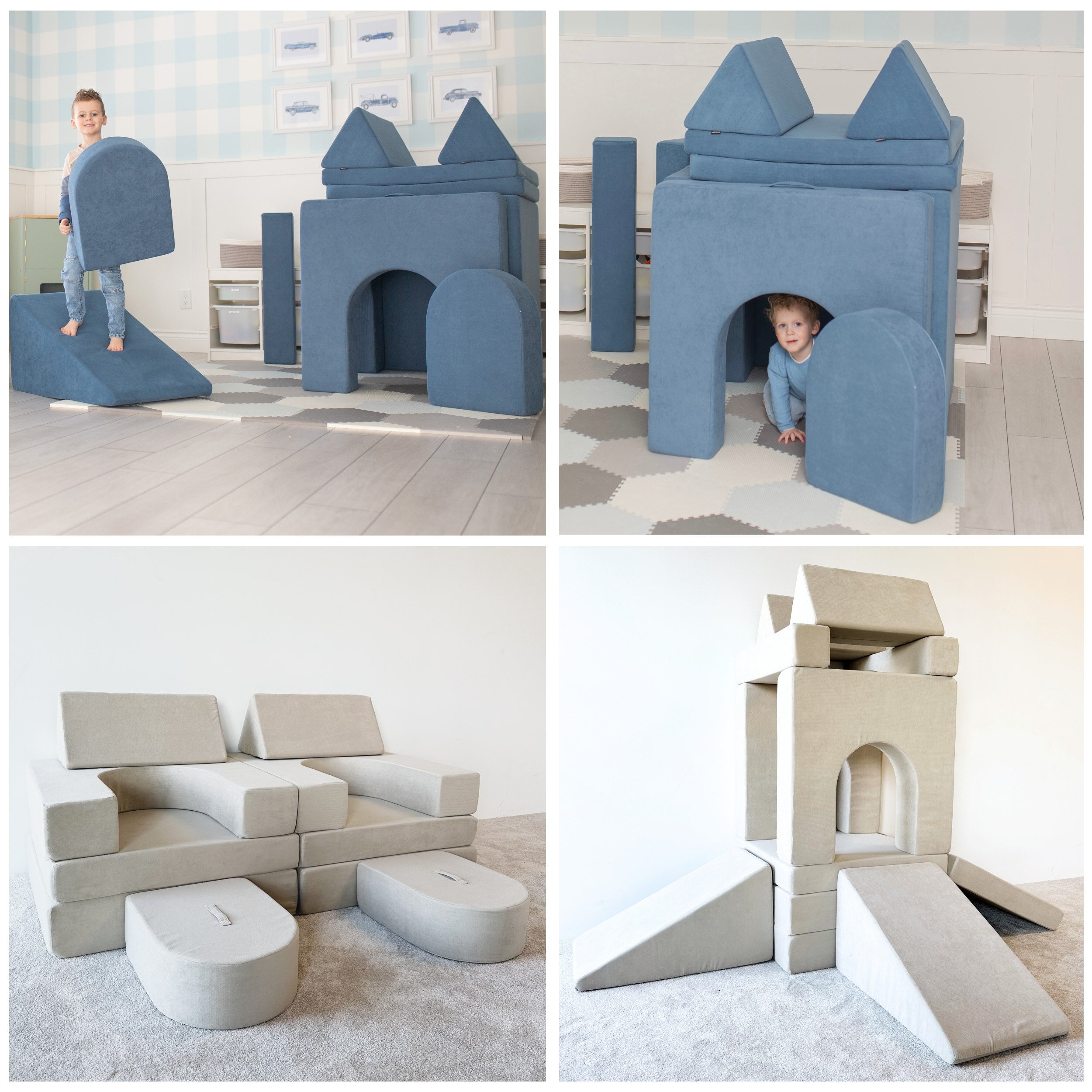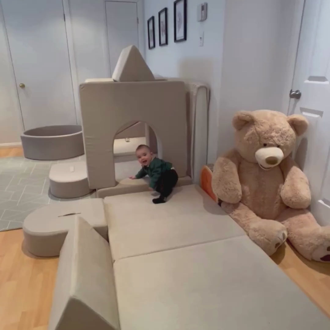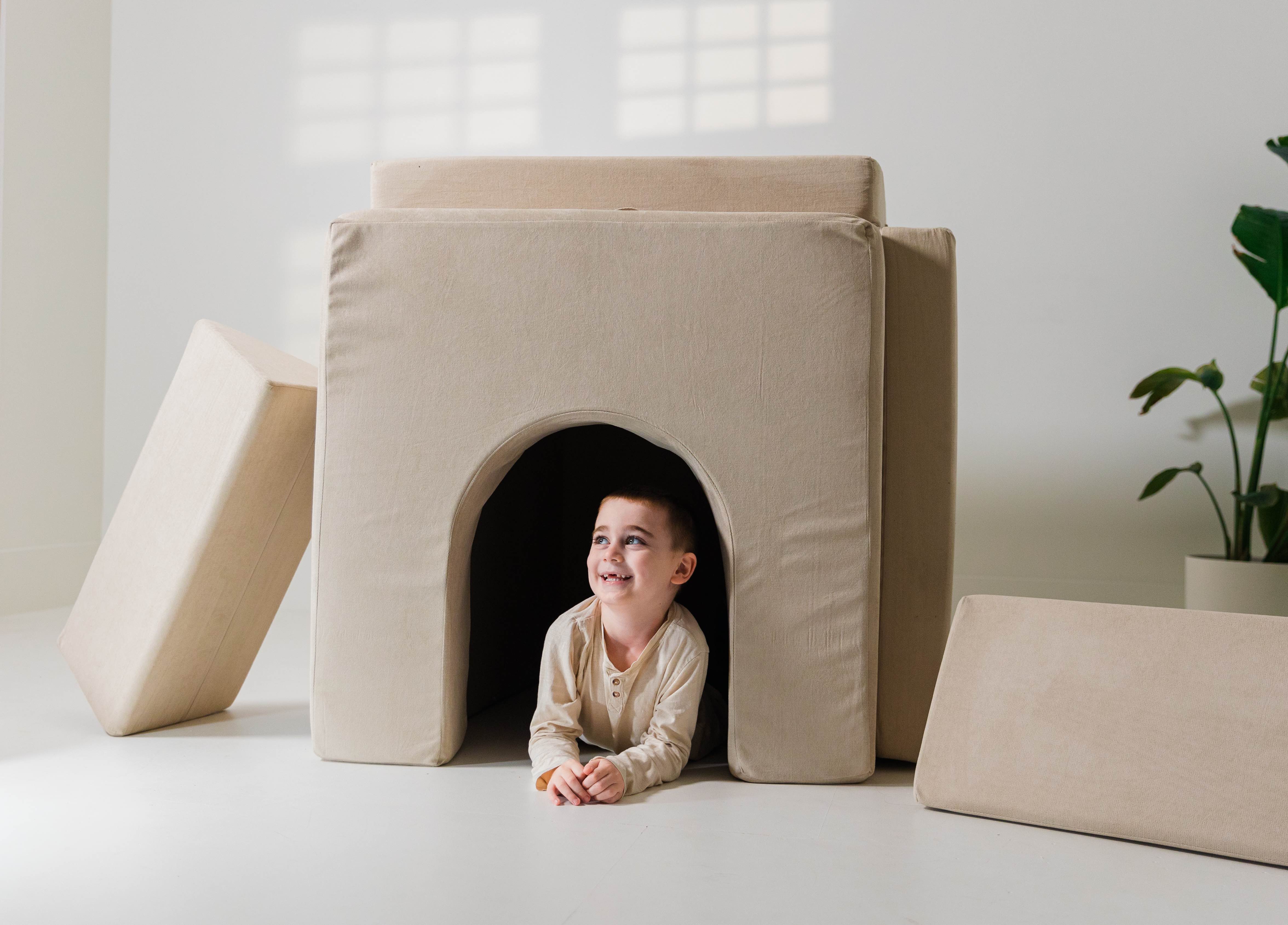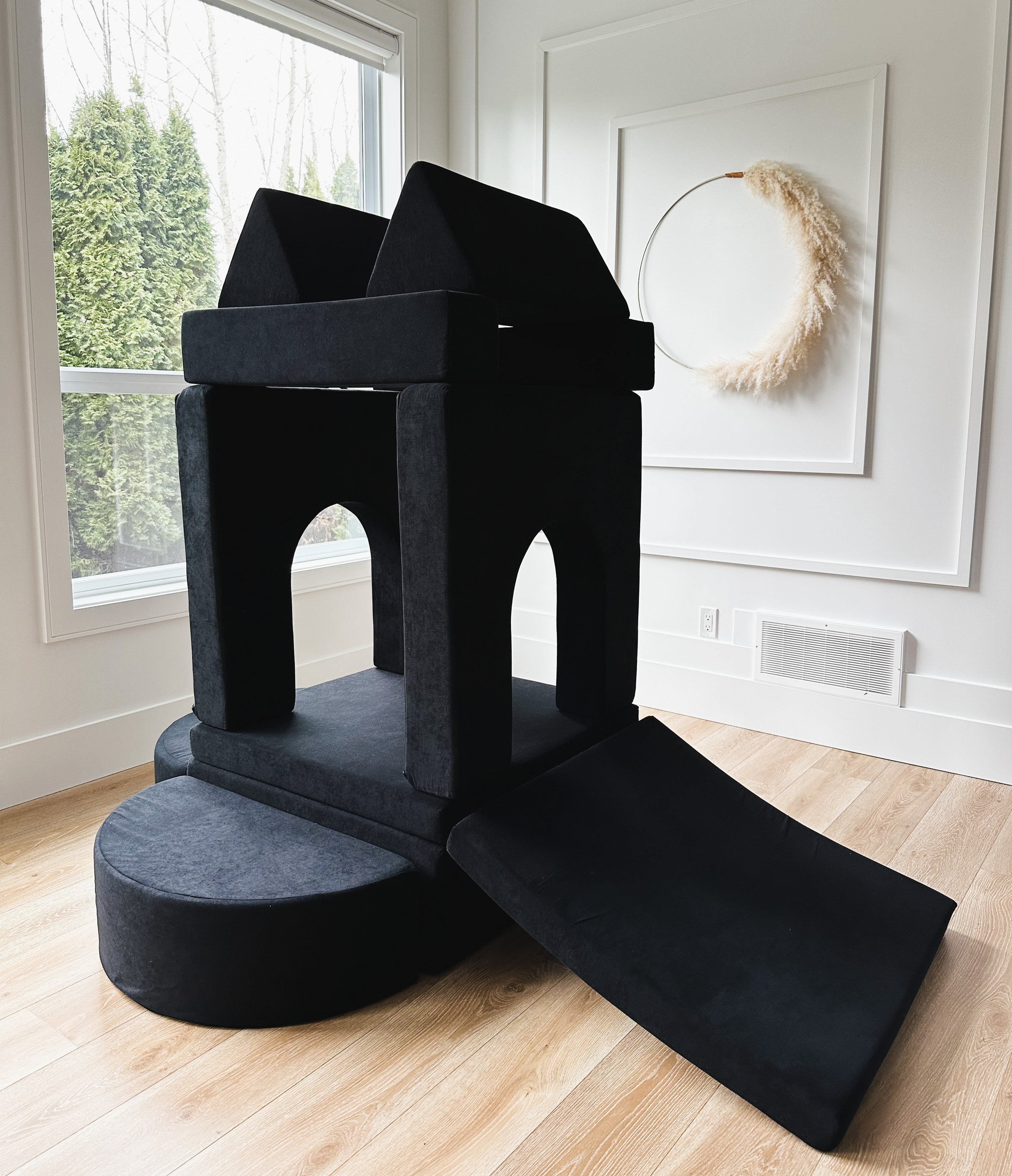 Two arch shape pieces + two doors made of strong, sturdy, high density foam that serve as archways and doors for all kinds of play and functionality!