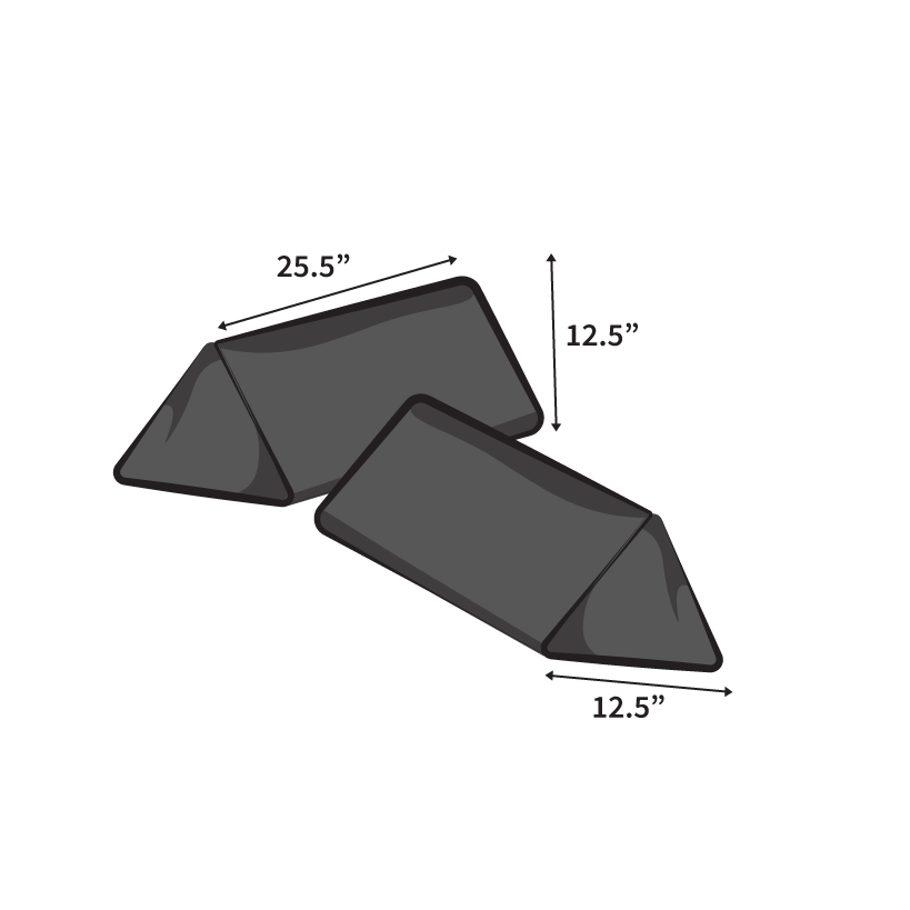 Two triangle pieces of strong, sturdy, high density foam that serve as the support for laid back relaxation or as building blocks for all kinds of imaginative play.