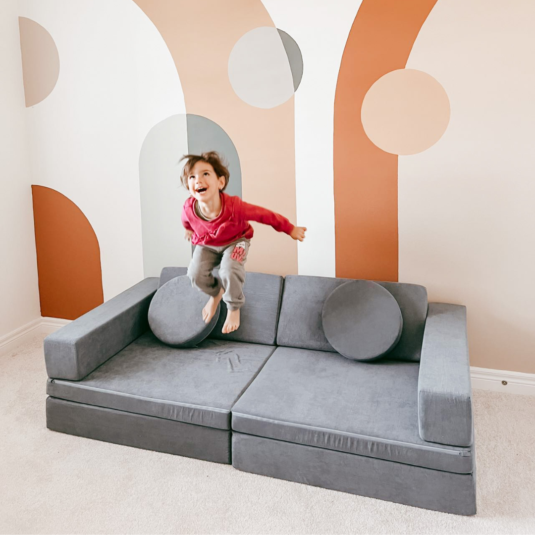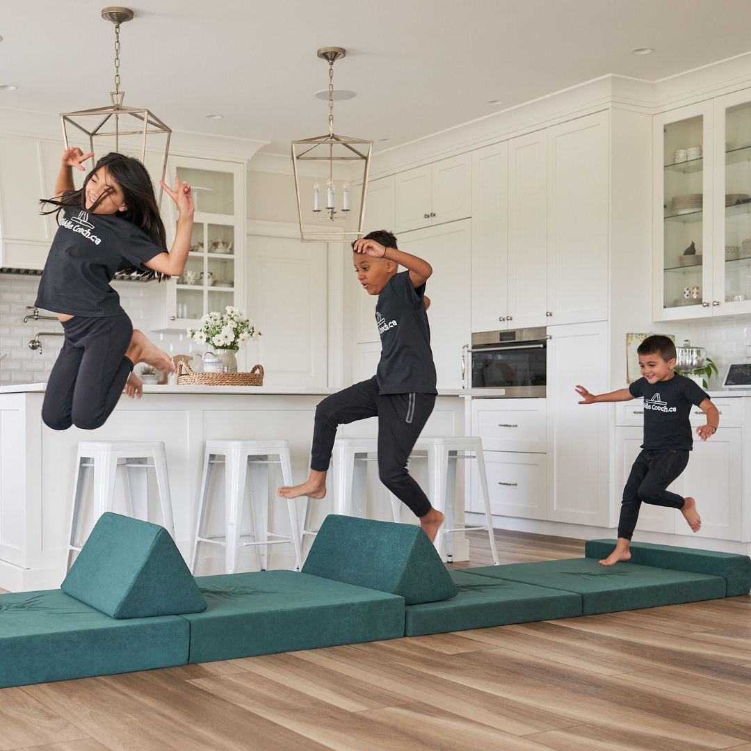 Looking to keep your kids active and entertained indoors? Kiddie Couch serves as the perfect playground for kids to jump, slide, and roll around! As soon as kids open up their Kiddie Couch their first instinct is to instantly start jumping on it!